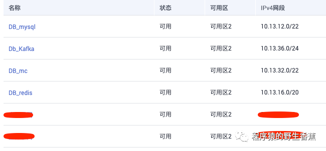 第二、子网划分,每一个vpc划分多个子网,比如我拿生产业务vpc来举例子,可以划分为:容器子网,mysql子网,redis子网等。(注意:子网在阿里云就是交换机的概念) -