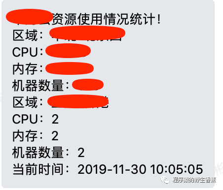 这个统计信息会统计我们当前阿里云使用了多少机器,多少cpu,多少内存。这个信息会发给我们老大,同时开发老大也会关注这个,因为涉及到成本。