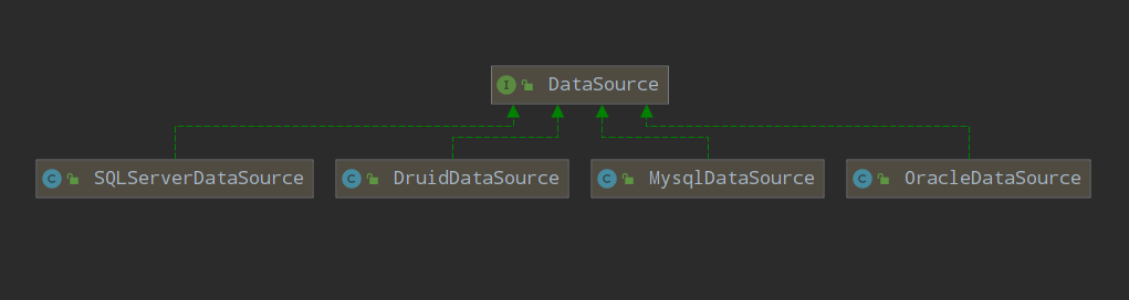 角色1 - Java的设计者:我们设计好DataSource接口,你们其它数据库厂商想要开发者用你们的数据源监控数据库,就得实现我的这个接口!