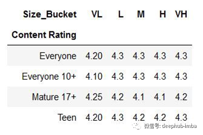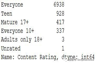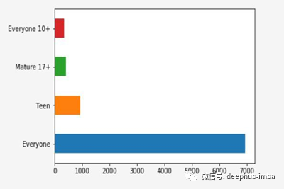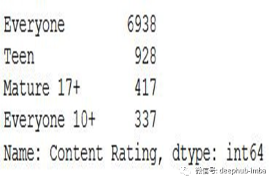 在我们使用的数据集中,我们将分析内容Rating栏中的前4个类别的执行情况。