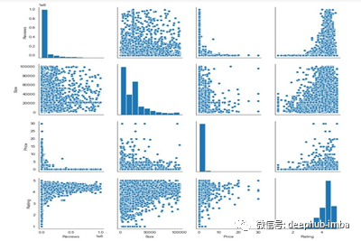 让我们为数据集的评论、大小、价格和评级列创建一对图。