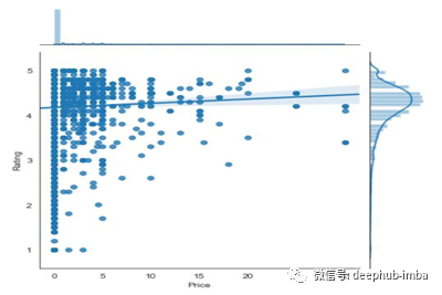 从上图中我们可以推断出,当app的价格上升时,评级会稳步上升。