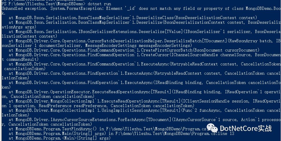 错误描述显示_id不匹配任何类型的字段或属性。这是因为Book对象无法映射_id字段从数据库到“学生”类型的任何属性。这是在我们创建文档时自动添加的。让我们通过在Book类中添加Bson类型的ID属性。