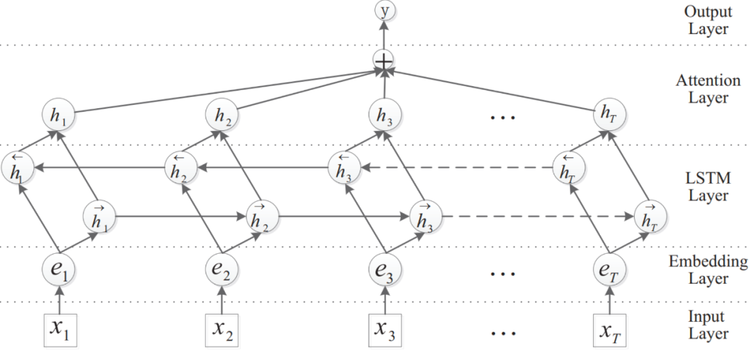 Attention Layer: 典型的 Soft-Attention 层。直接随机初始化一个参数向量作为 Query,用于与句子的编码结果进行一维匹配计算注意力分数,再对句子的各个词的编码结果进行加权求和。