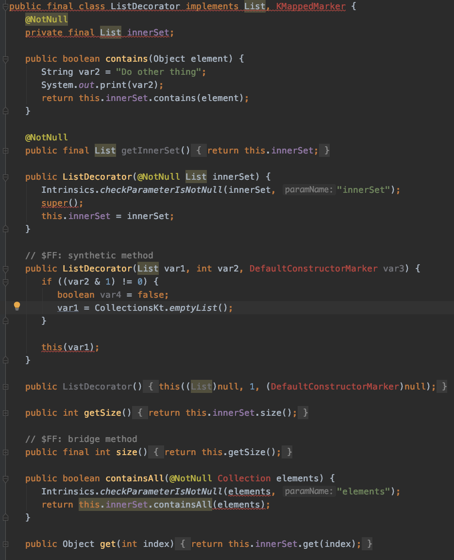 class ListDecorator<T>(val innerSet: List<T> = listOf()) : List<T> by innerSet {