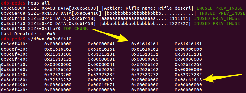 我们直接让他写完,再来看一下,已经构造出 fake chunk 了
