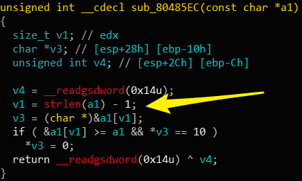 Leave a Message 功能里面调用了一个函数,其中有 strlen