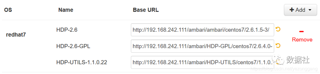 [HDP-UTILS-1.1.0.22]name=HDP-UTILS Version - HDP-UTILS-1.1.0.22baseurl=http://192.168.242.111/ambari/HDP-UTILS/centos7/1.1.0.22# baseurl=http://192.168.242.111/ambari/HDP-UTILSgpgcheck=1gpgkey=http://192.168.242.111/ambari/HDP-UTILS/centos7/1.1.0.22/RPM-GPG-KEY/RPM-GPG-KEY-Jenkins# gpgkey=http://192.168.242.111/ambari/HDP-UTILS/RPM-GPG-KEY/RPM-GPG-KEY-Jenkinsenabled=1priority=1