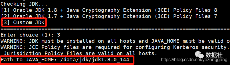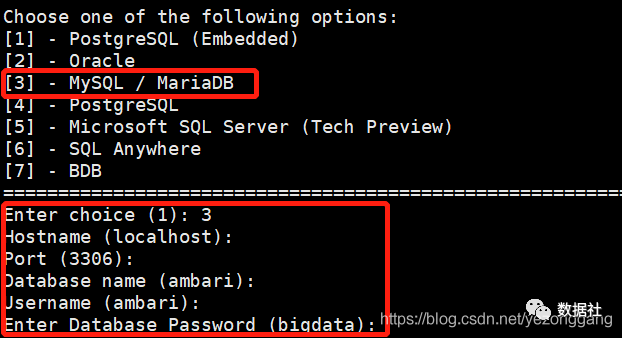 配置中会提示输入JAVA_HOME和ambari元数据库的登录密码:
