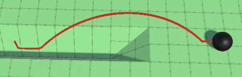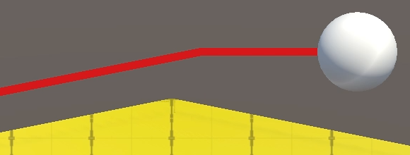 当我们的球体到达坡道的顶部时,由于其向上的动量,它开始飞行。这是现实的,但可能并不理想。