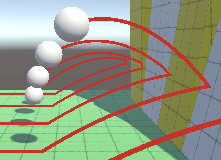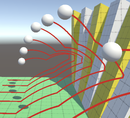如果步距不太高,则以足够的速度接近时,球体会反弹。在测试场景中,这对于平坦车道甚至很少发生,因为我是通过将步高降低到零而不合并顶点来实现的。这会产生所谓的幻影碰撞。应该设计场景几何图形以避免这种情况,但我坚持指出来。