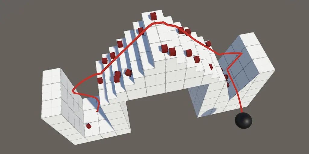 尽管需要一些额外的关卡设计工作,但使用简化的碰撞体上楼梯是使它们在物理上可导航的最佳方法。通常,使碰撞形状尽可能简单是一个好主意,出于性能和运动稳定性的原因,避免不必要的细节。因此,我们将坚持使用这种方法。但这是一个近似值,因此在仔细检查时,您会发现球体切穿并悬停在楼梯台阶上方。但是,从远处和运动中通常并不太明显。