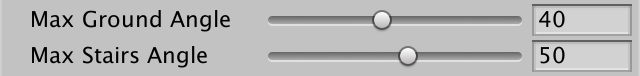 如果我们能够爬楼梯,那么我们使用的楼梯最大角度与正常地面的最大角度是有道理的。因此,为它们添加一个单独的最大角度,默认情况下设置为50°。