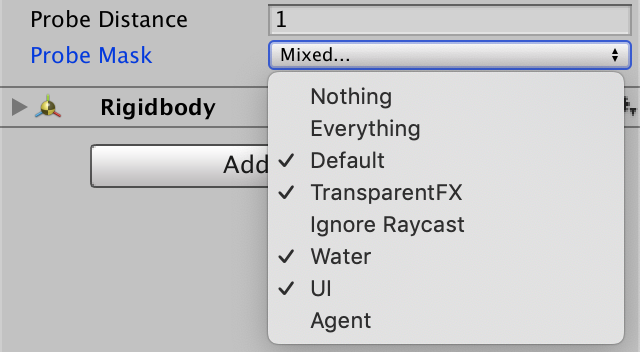 然后,我们可以配置球体,以便探测除忽略Raycast 和 Agent 之外的所有层。