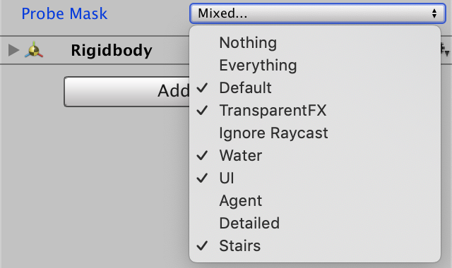 接下来,向 MovingSphere 添加一个可配置的 LayerMask 探针掩码,该掩码最初设置为-1,与所有图层匹配。