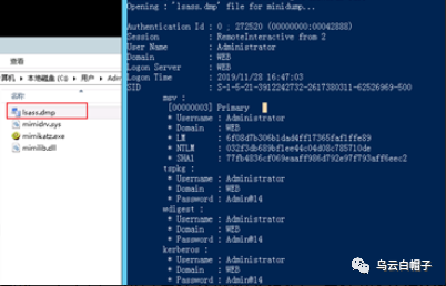 2、使用mimikatz从转储的lsass.dmp中来读取明文密码
