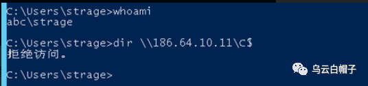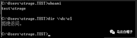 在普通域成员上执行dir命令提示“拒绝访问”:
