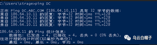 可以通过ping主机名获取到域控的ip