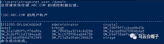 查看所有域用户:net user /domain