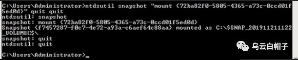 ntdsutil snapshot "mount {72ba82f0-5805-4365-a73c-0ccd01f5ed0d}" quit quit