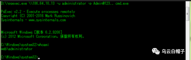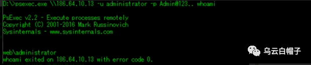 注入成功后,可以使用psexec、wmic、wmiexec等实现远程执行命令。