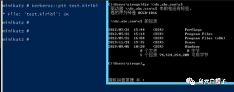 3、利用mimikatz将工具得到的TGT票据写入内存,创建缓存证书: