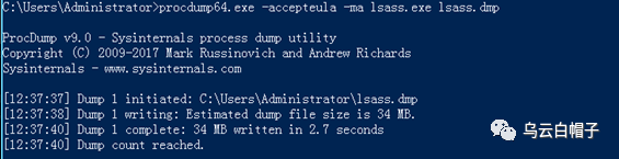 1、使用procdump将目标的lsass.exe转储成dmp文件