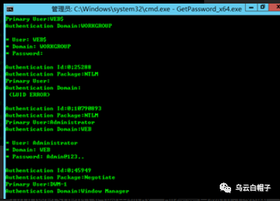 Getapss是由闪电小子根据mimikatz编译的一个工具,可以直接获取明文密码,直接运行Getpass.exe即可: