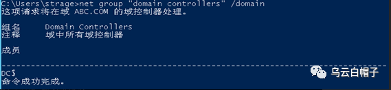 查询与控制器主机名 :net group “domain controllers” /domain