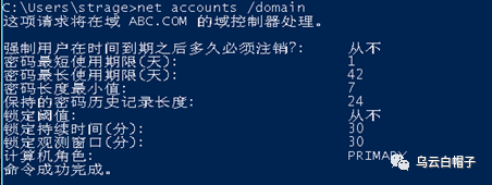 查看域密码策略:net accounts /domain
