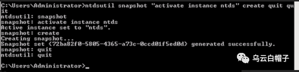 ntdsutil snapshot "activate instance ntds" create quit quit