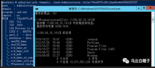 在攻击机器上利用mimikatz将获取的hash注入到内存中,成功后用dir命令可以成功列出目录文件: