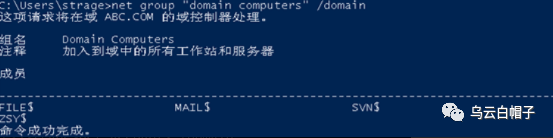 查看加入域的所有计算机名:net group "domain computers" /domain