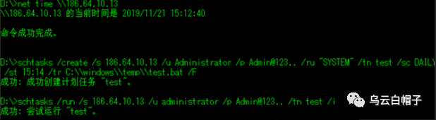 低版本的操作系统可以直接使用at创建计划任务: