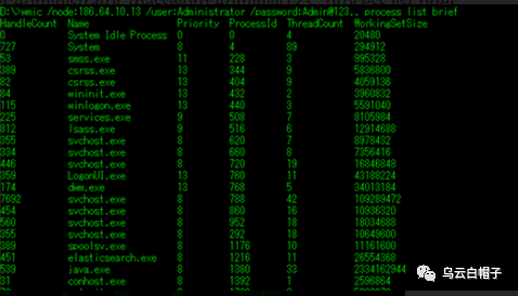 wmic /node:186.64.10.13 /user:Administrator /password:Admin@123.. process list brief
