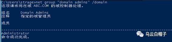 查询域管理用户:net group “domain admins” /domain