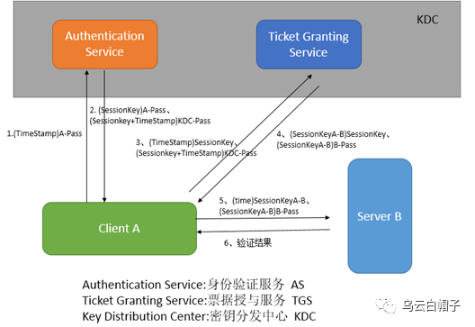 第1步:KRB_AS_REQ:Client-A发送Authenticator(通过A密码加密的一个时间戳TimeStamp)向KDC的AS服务认证自己的身份;