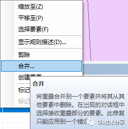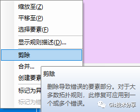 ,这个错误拓扑规则要求面要素在任何区域内都不能有重叠情况,修复方式一个是剪除,一个是合并,都非常容易理解,这里我就不解释啦,大家实际操作中应用吧!