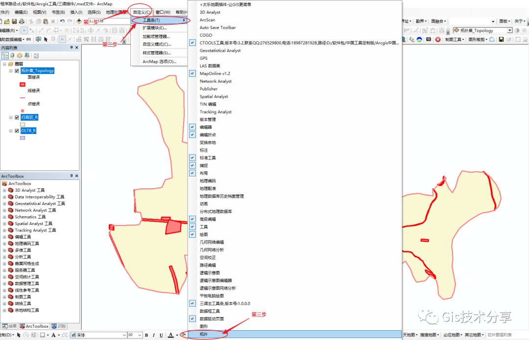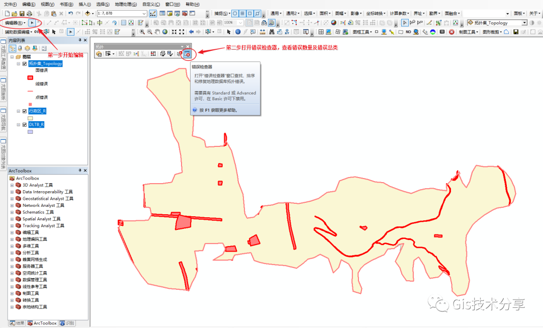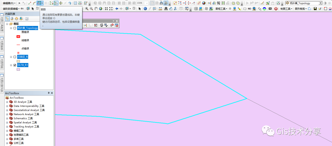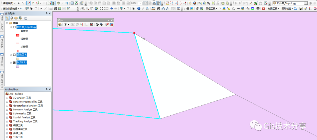 上一篇呢我写了拓扑完整的建立过程,这篇我讲一下拓扑面要素的修改方法(这次使用的数据就不给大家共享啦