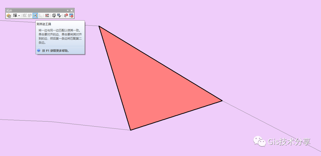 2、使用对齐边工具,这个工具允许我们将一条边与另一条边快速匹配,以使其重合而不必手动追踪或修整边。可单击一条边,然后单击另一条边,接着第一条边会立即与第二条边相匹配。例如,我们现在有表示土地利用的面图层,并且发现需要修改某些面来使边界对齐。当发现有间距的面时,拓扑使用该工具特别有帮助!