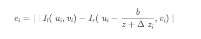 对于左图像中有效ROI区域的每个归一化像素坐标值,图像误差定义为: