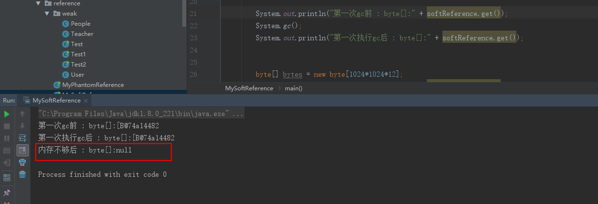 System.out.println("内存不够后 : byte[]:" + softReference.get());