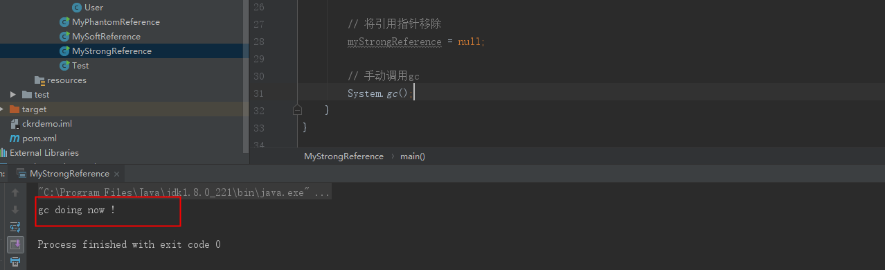 PhantomReference<MyPhantomReference> phantomReference = new PhantomReference<MyPhantomReference>(new MyPhantomReference(),QUEUE);
