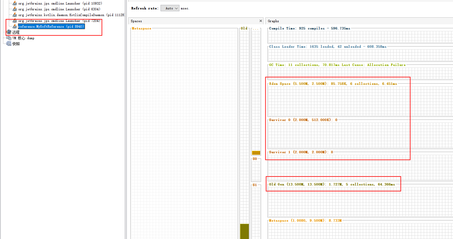 基于对堆内存的分析。可以看出。 第一次 老年代 装入 10 M的 对象。 第二次 想要 装入 12M 对象。肯定装不下。 由于是 软引用。 jvm gc 时会将这部分内容先回收掉。 所以这里没有 出现OOM 的问题。