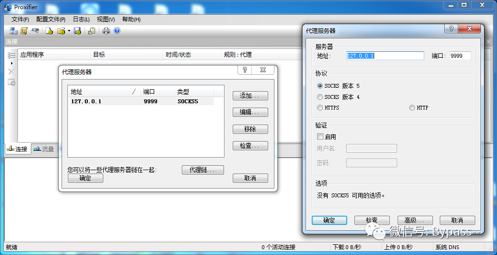3、配置Proxifier,配置文件—代理服务器—添加新代理。