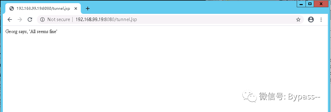 1、将 tunnel脚本(aspx | ashx | jsp | php)上传到Web服务器,访问显示“Georg says, ‘All seems fine’“,表示脚本运行正常。