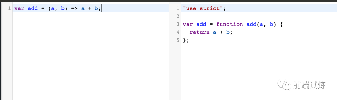 嗯... 既然 Babel 是一个编译器,当然它的工作过程也是这样的。我们来仔细看看这三步分别做了什么事。当然,还是拿上面的🌰来说明 const add = (a, b) => a + b,看看它是如何经过 Babel 变成: